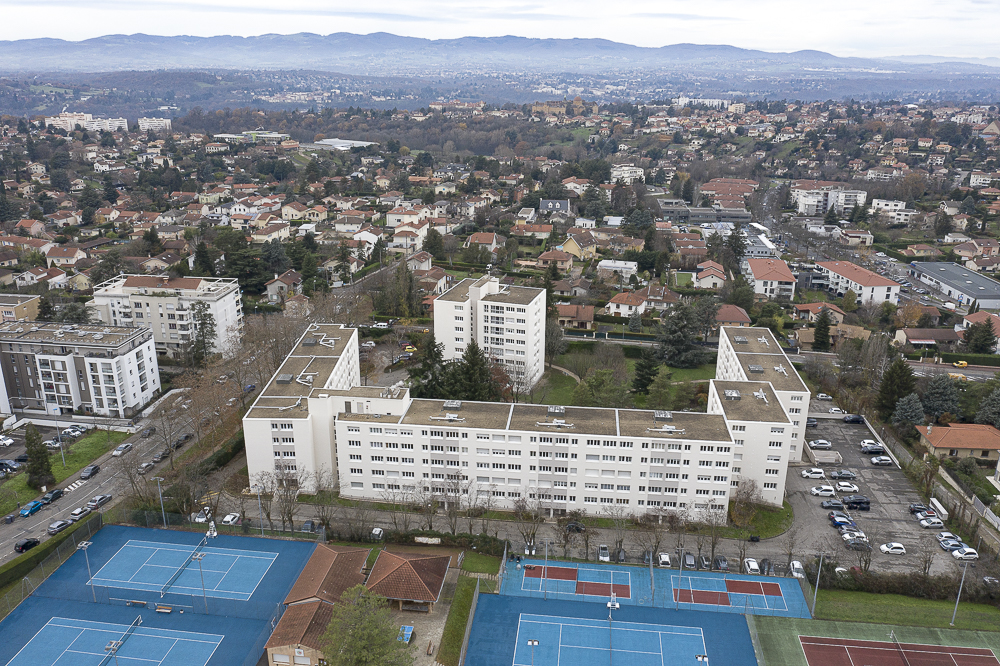 Au-dessus d’elle, le parc du mont RIANS et sa grande demeure, ancienne propriété de grands bourgeois lyonnais.